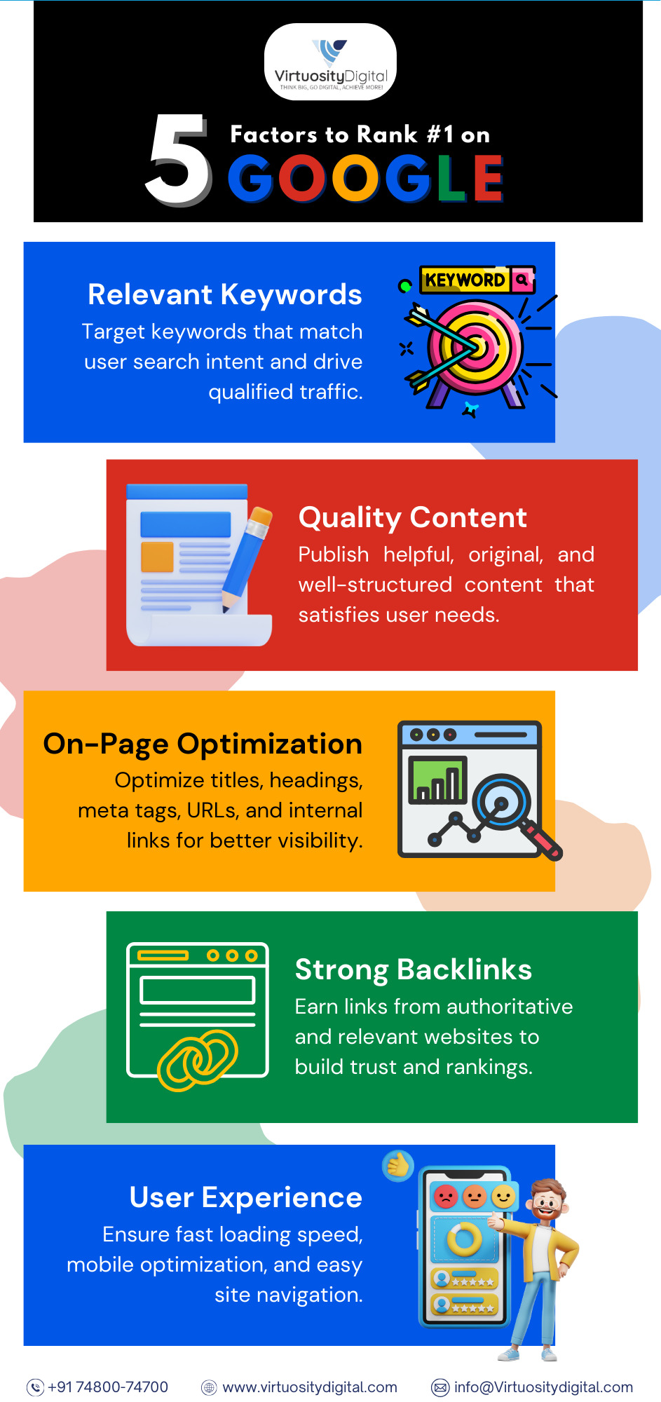 Many businesses struggle with visibility because they miss core ranking factors. Virtuosity Digital focuses on data-driven keyword research, on-page improvements, and high-quality link building to create sustainable SEO growth for your brand.
