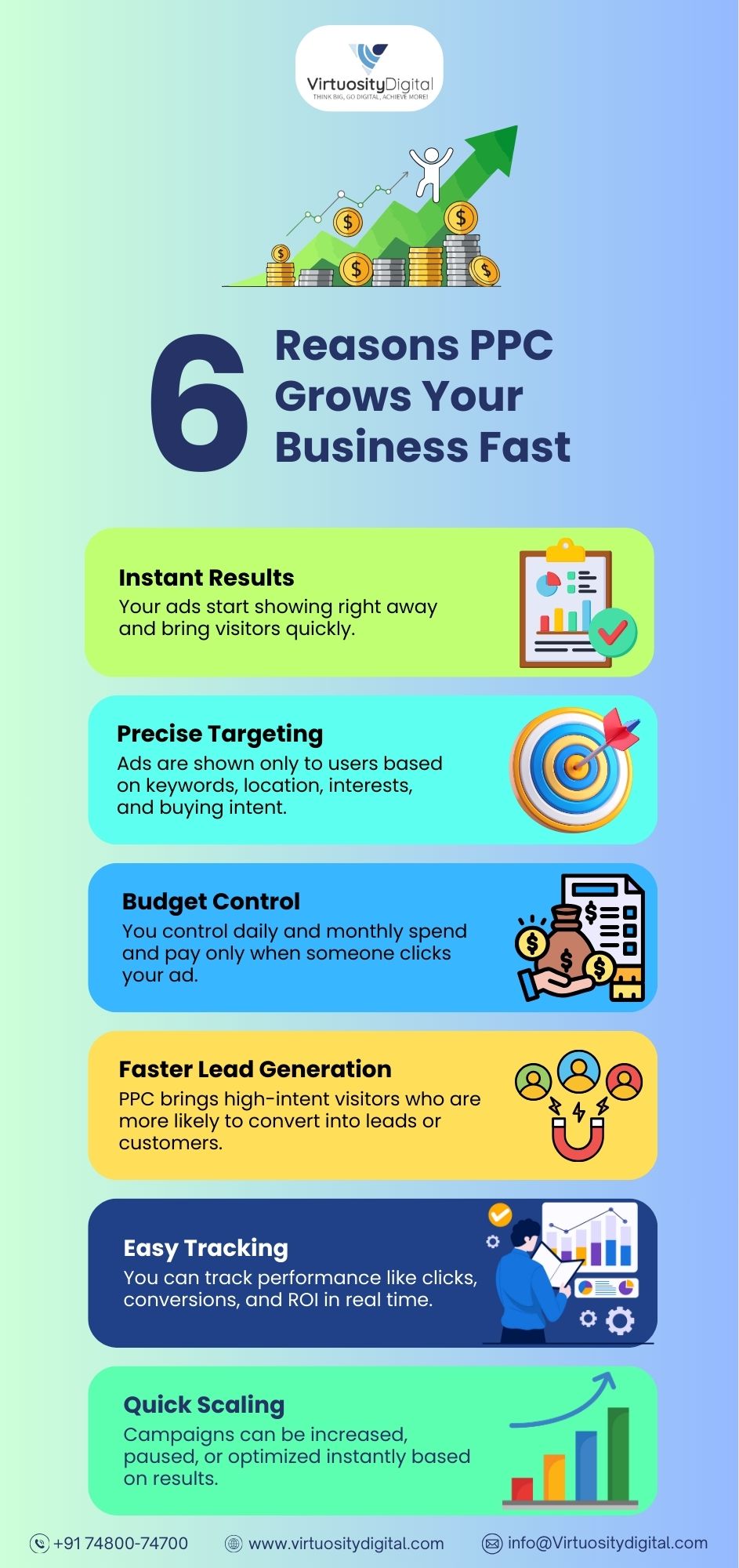»PPC advertising gives businesses full control over their budget, targeting, and performance. By reaching customers who are actively searching for solutions, companies can generate faster leads and improve conversion rates. Discover how PPC accelerates business growth with precision and speed.